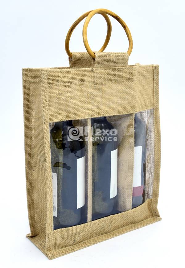 PORTABOTTIGLIA IN JUTA 3 POSTI cm.27×9 H32