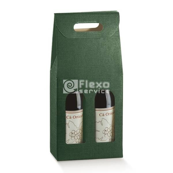 SCATOLA 2 BOTTIGLIE A CESTELLO SETA VERDE (30550-30806)